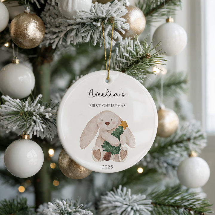 Personalised Baby’s First Christmas Ornament 2025 – Soft Bunny Design